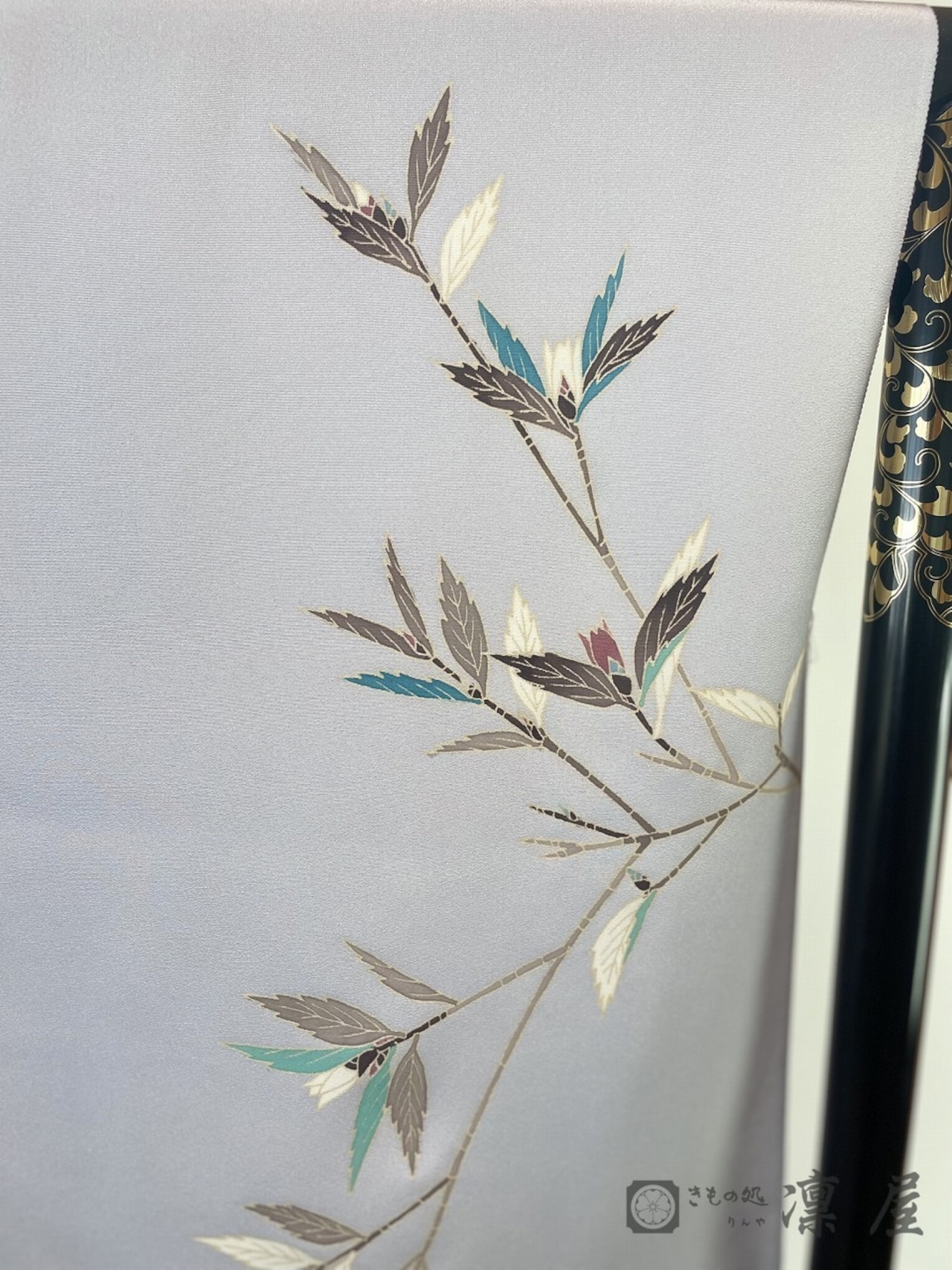 地色は明るい白梅鼠でほのかに紅みを感じる青紫系のお色です。