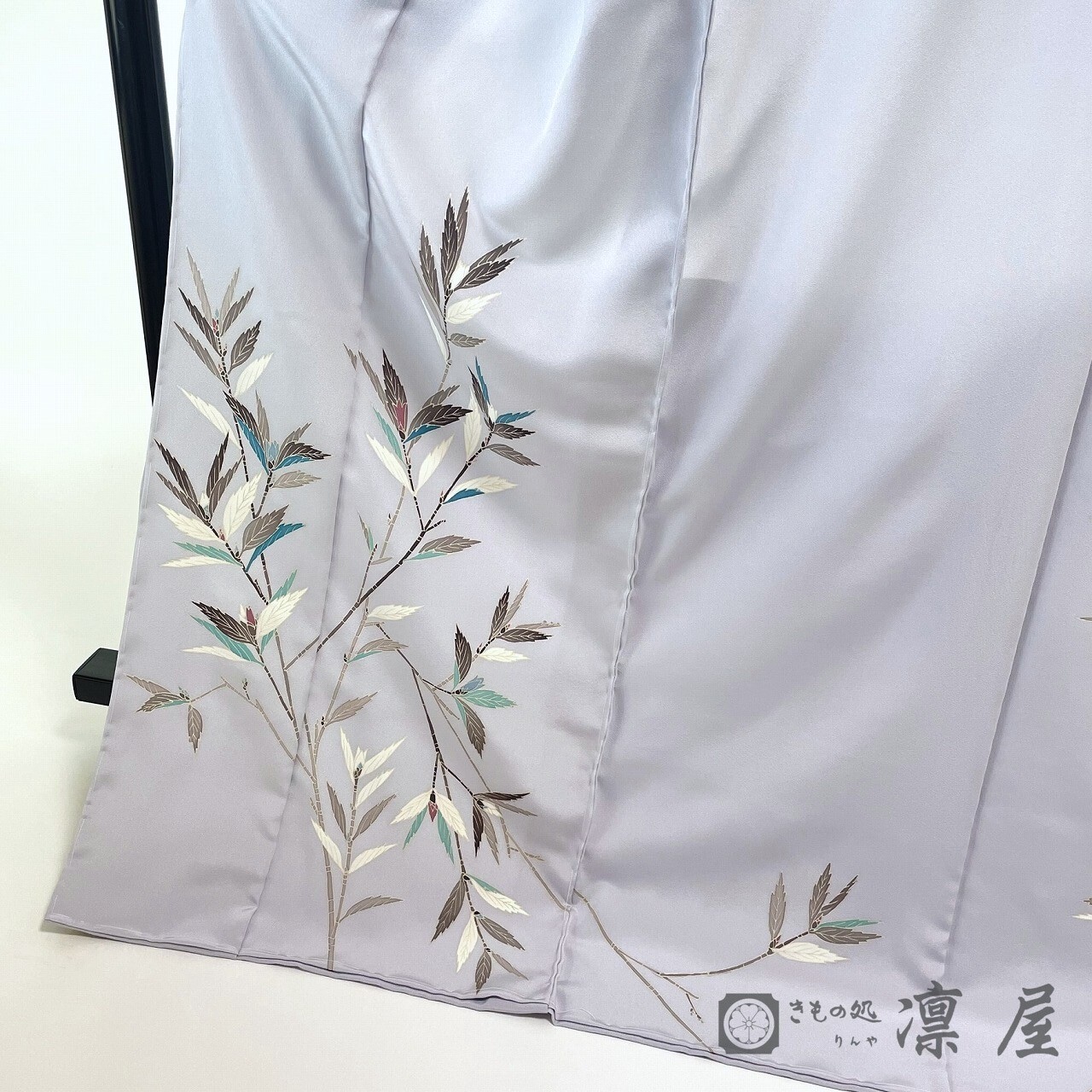 こちらは附下げとして染められた商品ですが、より格調高く装うことができるよう共色で染めた八掛をおつけし仮絵羽に仕上げました。八掛には柄はございませんので、いわゆる「附下げ訪問着」といった位置づけで略式の訪問着としてパーティーやおよばれに、気の張らない社交着として観劇やお食事に、と幅広いシーンでお召しいただけます。