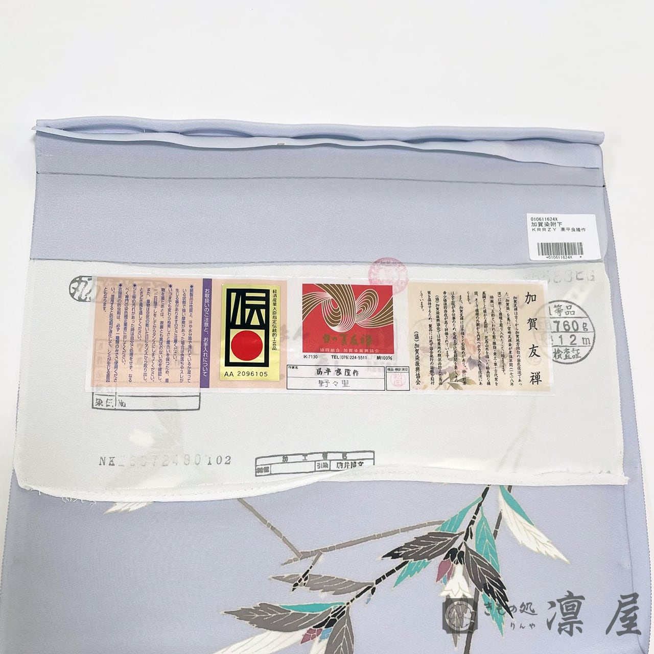 本作の作家・高平良隆氏は、紙に小下図や図案を起こさずに『白生地へ直接下絵を施す』という、加賀友禅において大変稀有な技術の担い手であられます。名匠の精巧な手仕事による、多くを語らずとも存在感ある逸品を是非ご堪能くださいませ。