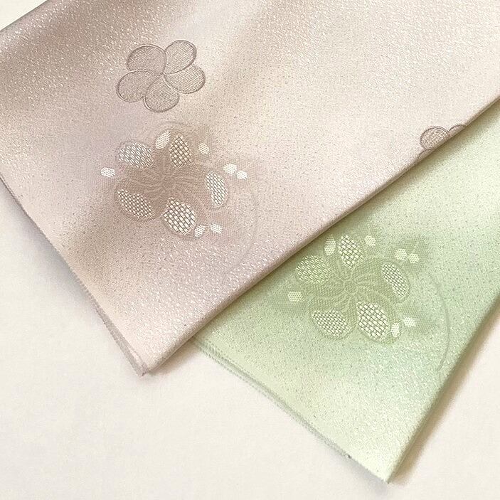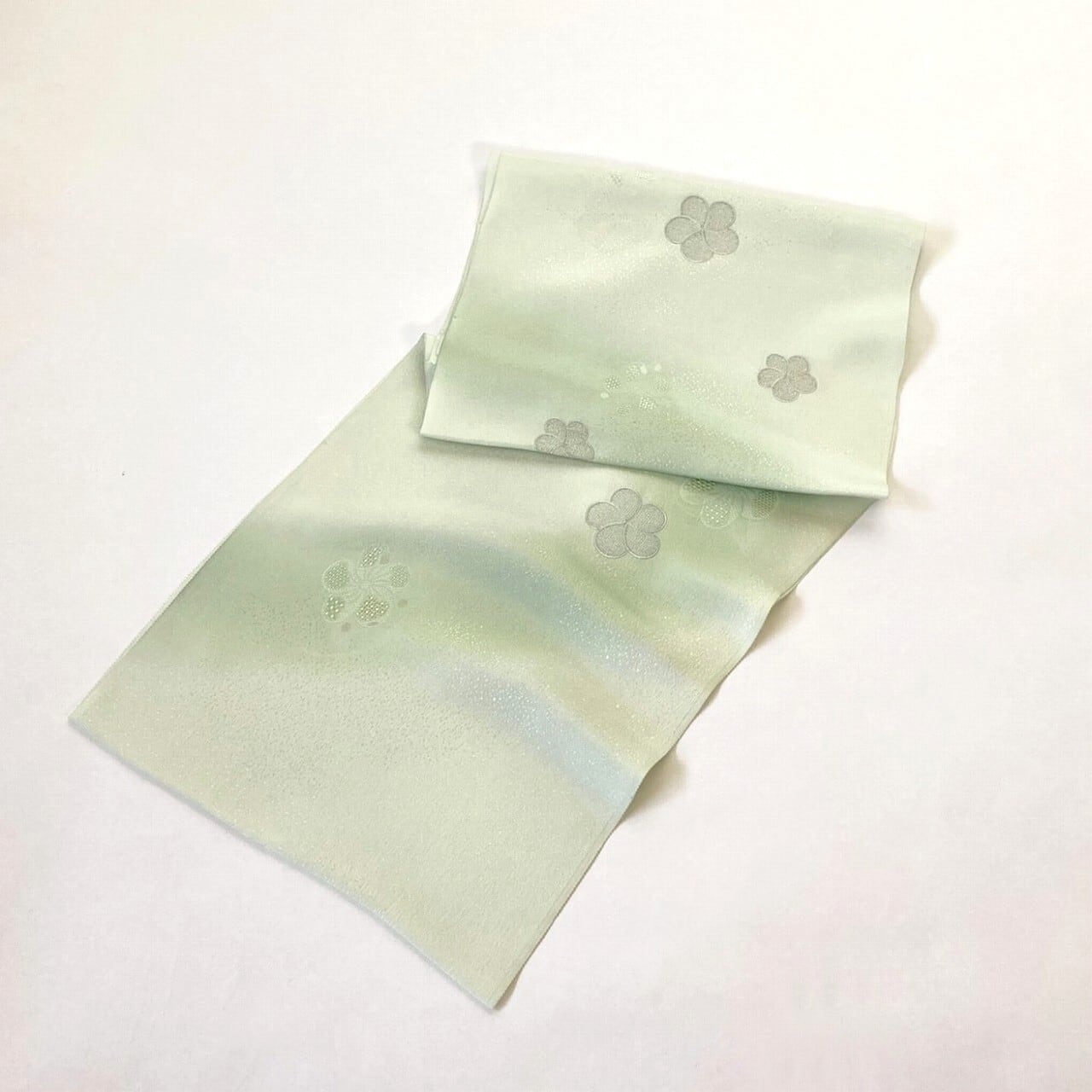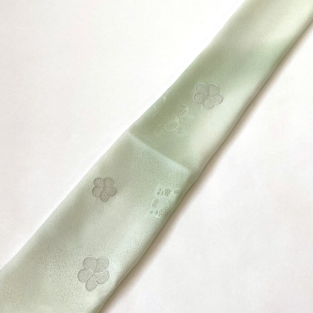 縫取りやメッシュで表現されたねじり梅が可憐な印象の帯揚げです。