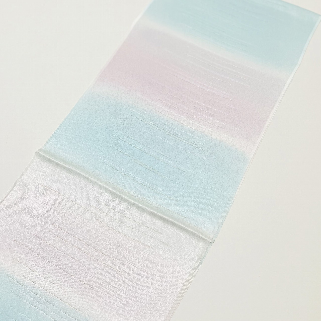 帯揚げ:横段ぼかしに金糸が上品に並んだ、艶のある非常に美しい帯揚げです。