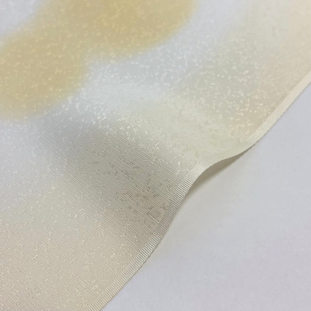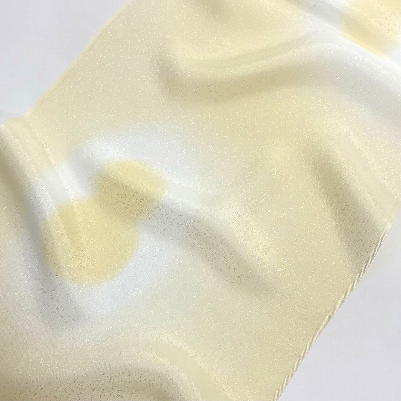 吹雪の地紋に瓢箪がぼかしでふんわりと配された帯揚げです。まるっとした瓢箪が可愛らしいですね。普段使いにはもちろん、非常に艶やかで適度なキチンと感もあるためセミフォーマルな装いにも合わせていただけそうです。