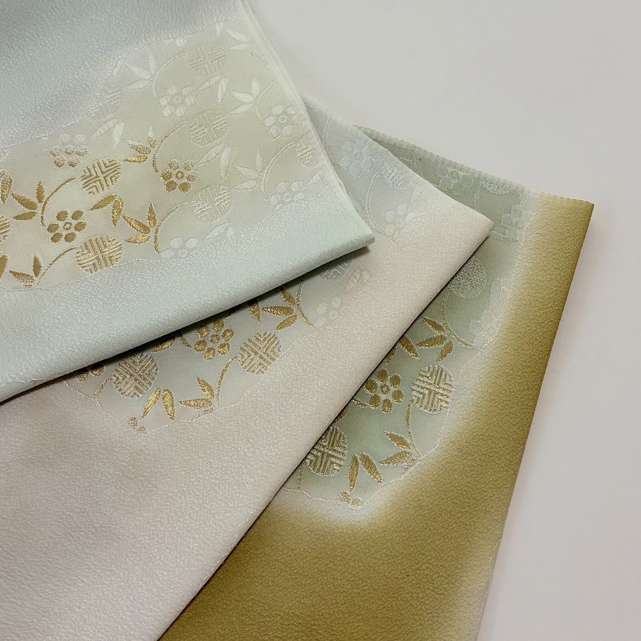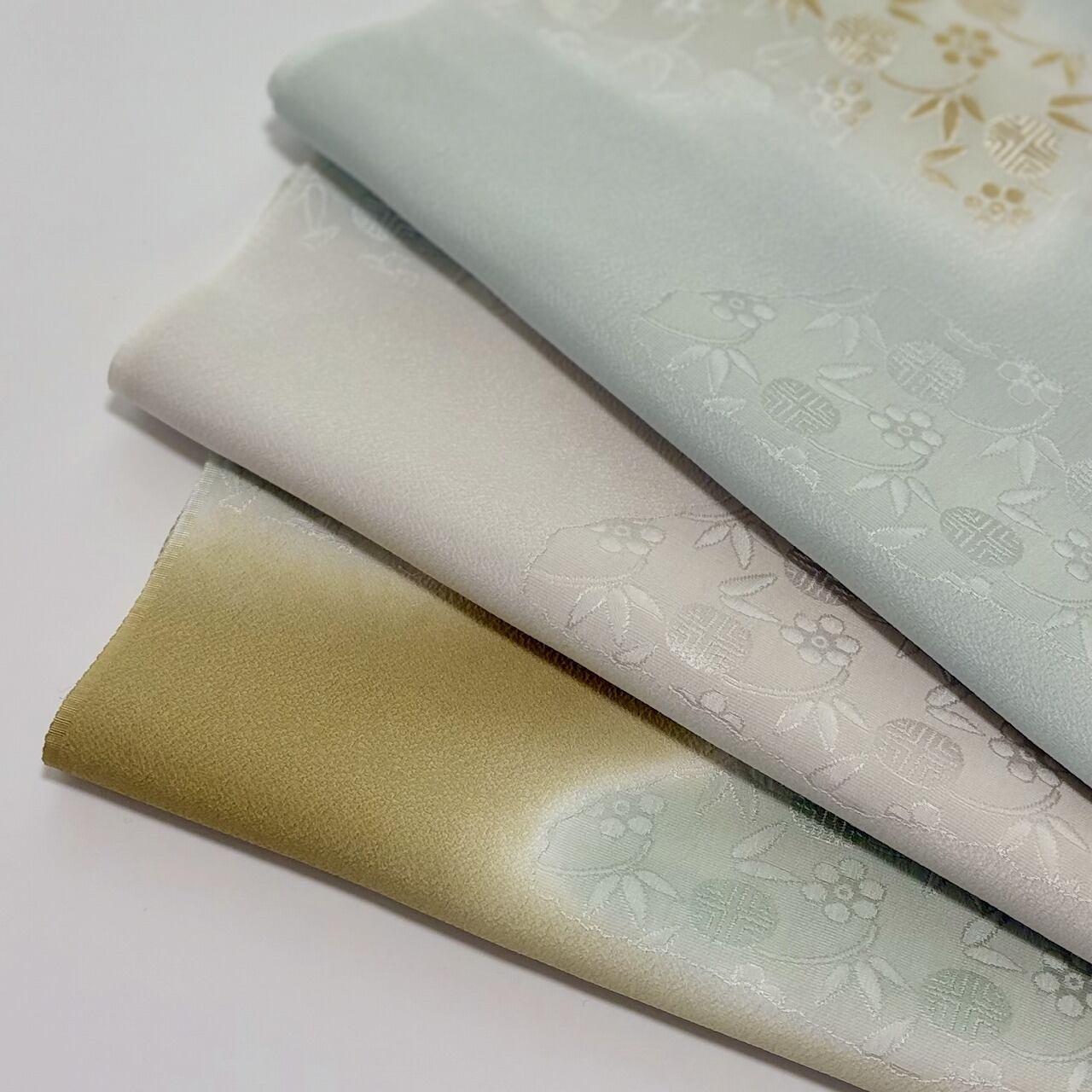 こちらの「鶯」はくすんだオリーブグリーンに、ペールトーンのブルーやグリーンのぼかしが入っています。