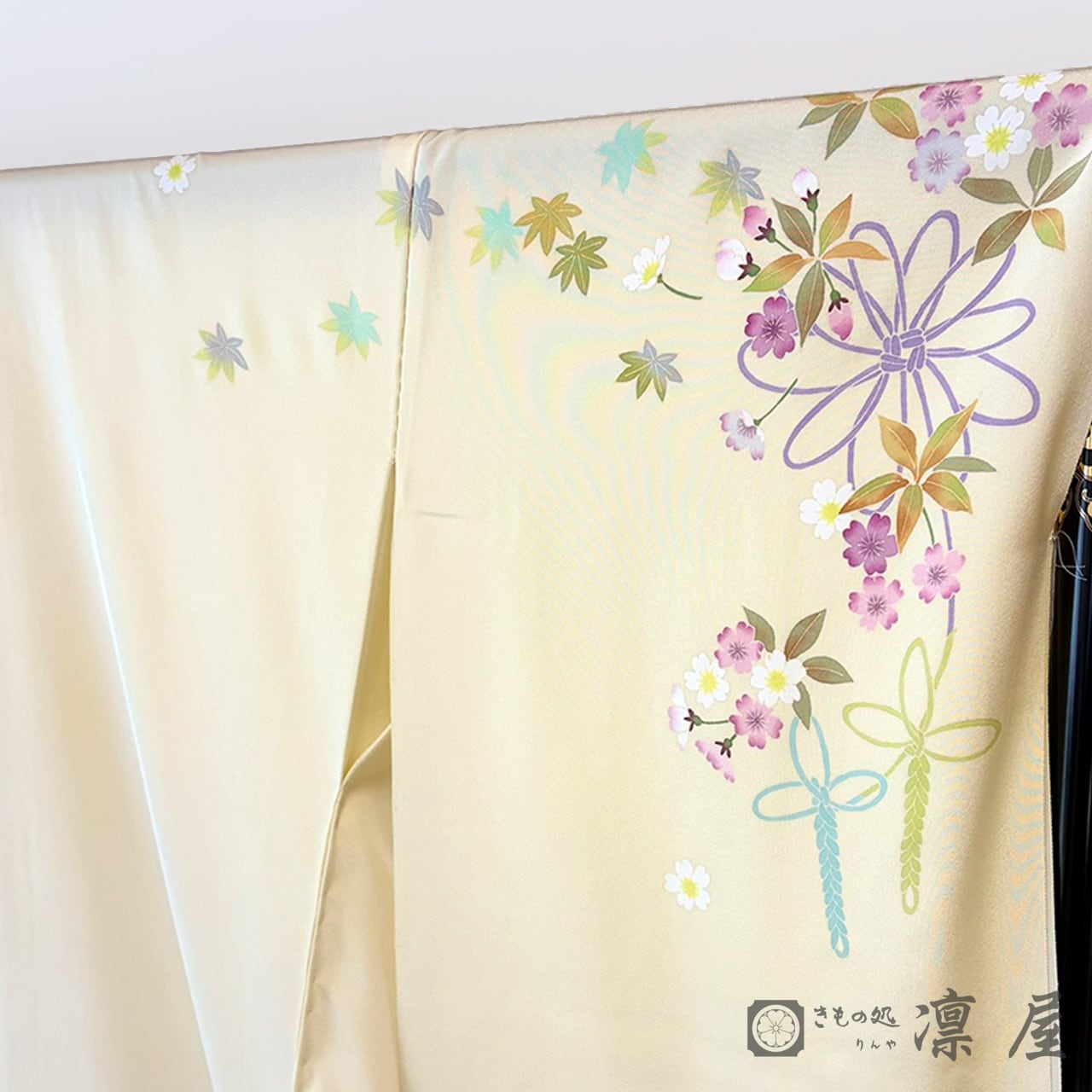 また、縁起や魔除けの意味を持つ組紐が、花結び、藤結び、蝶結びの意匠で花々にそっと寄り添います。