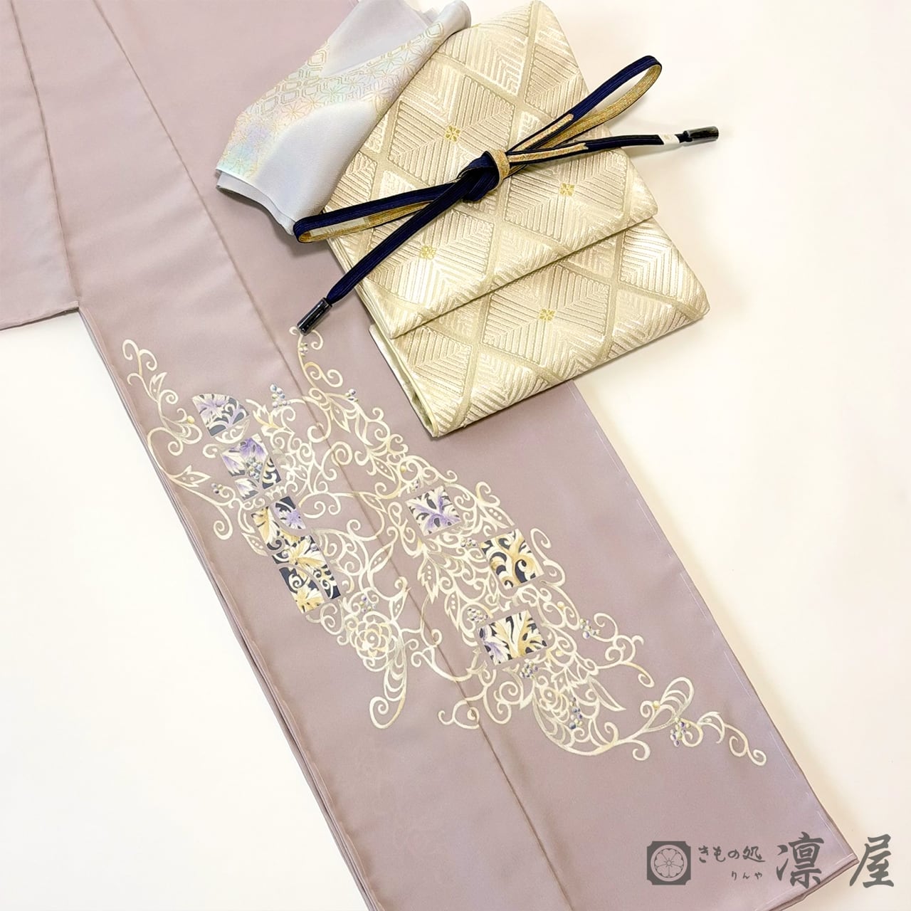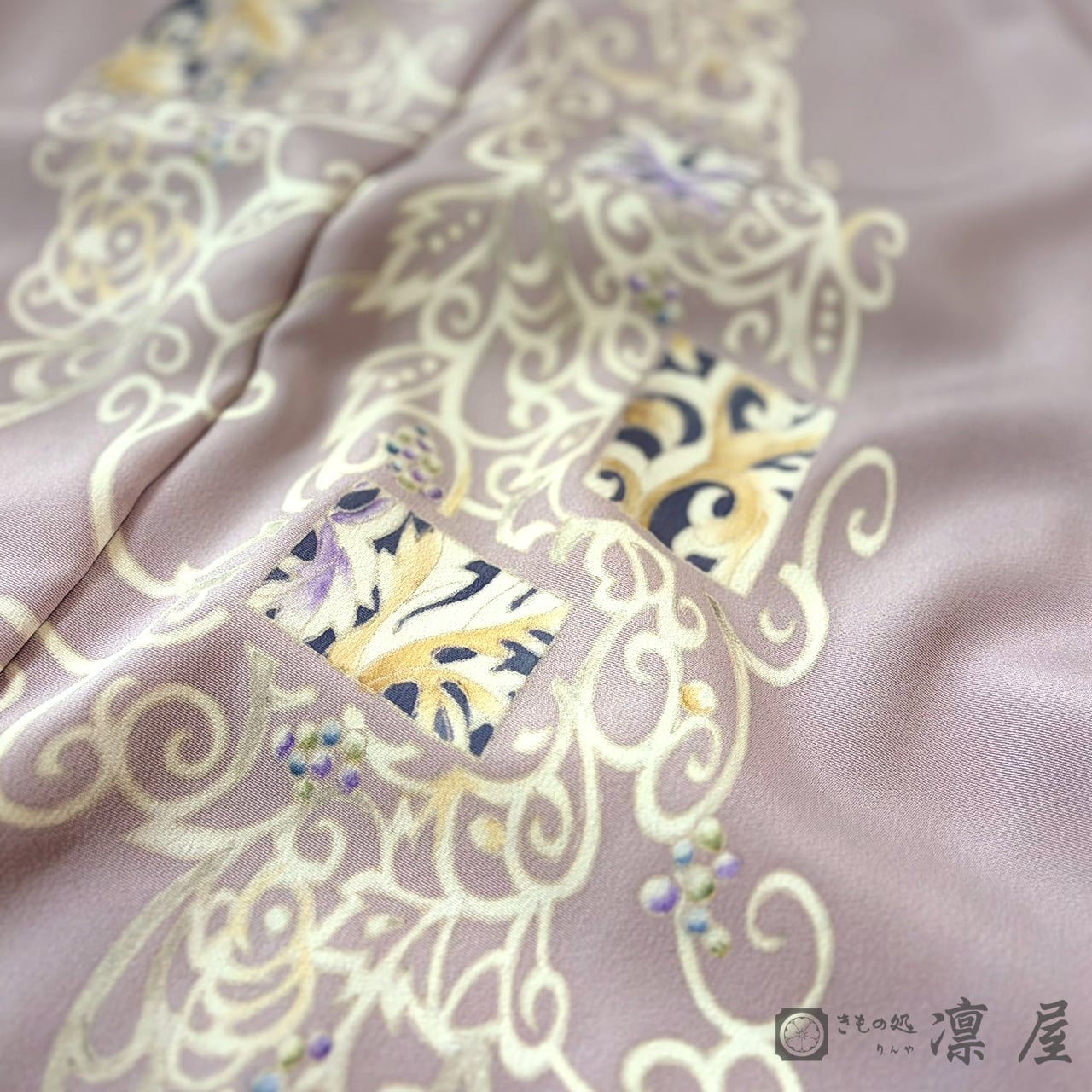正倉院文様を主軸とした繊細な筆致が目を惹く加賀友禅作家・吉村伊佐子氏に、凛屋別注で描き下ろしていただいた訪問着です。
