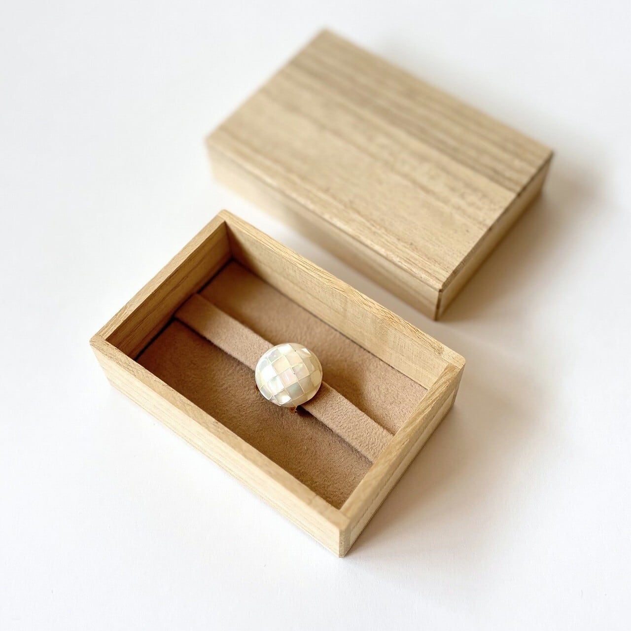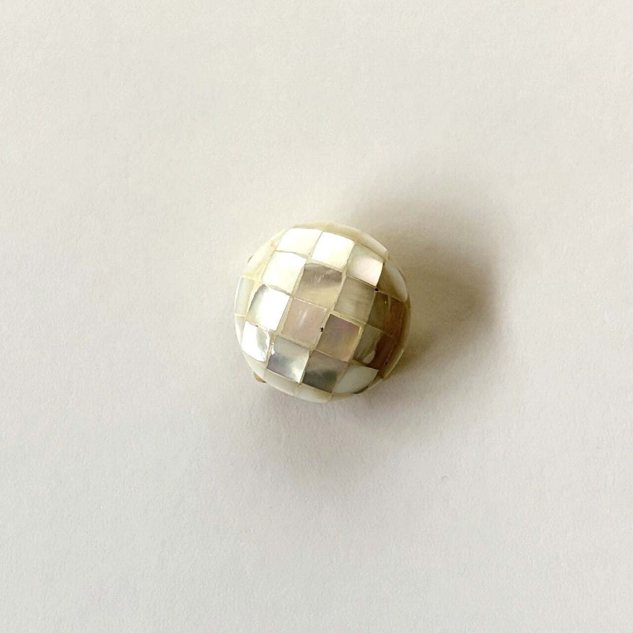 螺鈿の帯留です。ぷっくりコロンとした丸みと深みのあるモザイクシェルの色合いが、シンプルながら帯周りに存在感をみせてくれます。