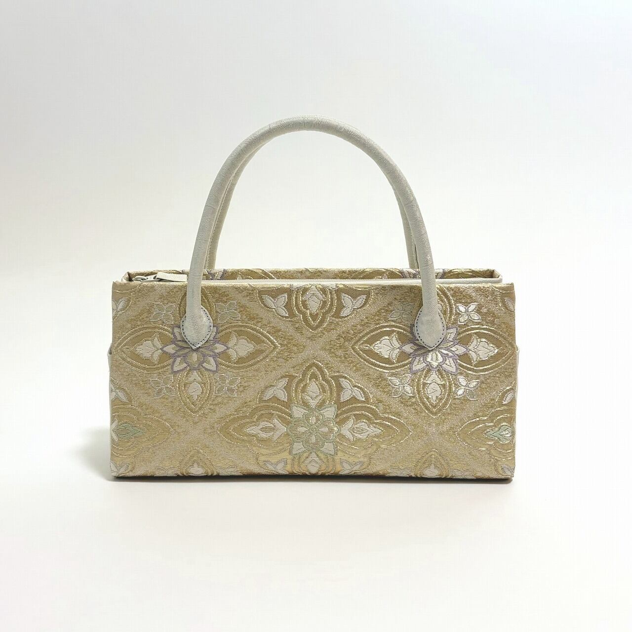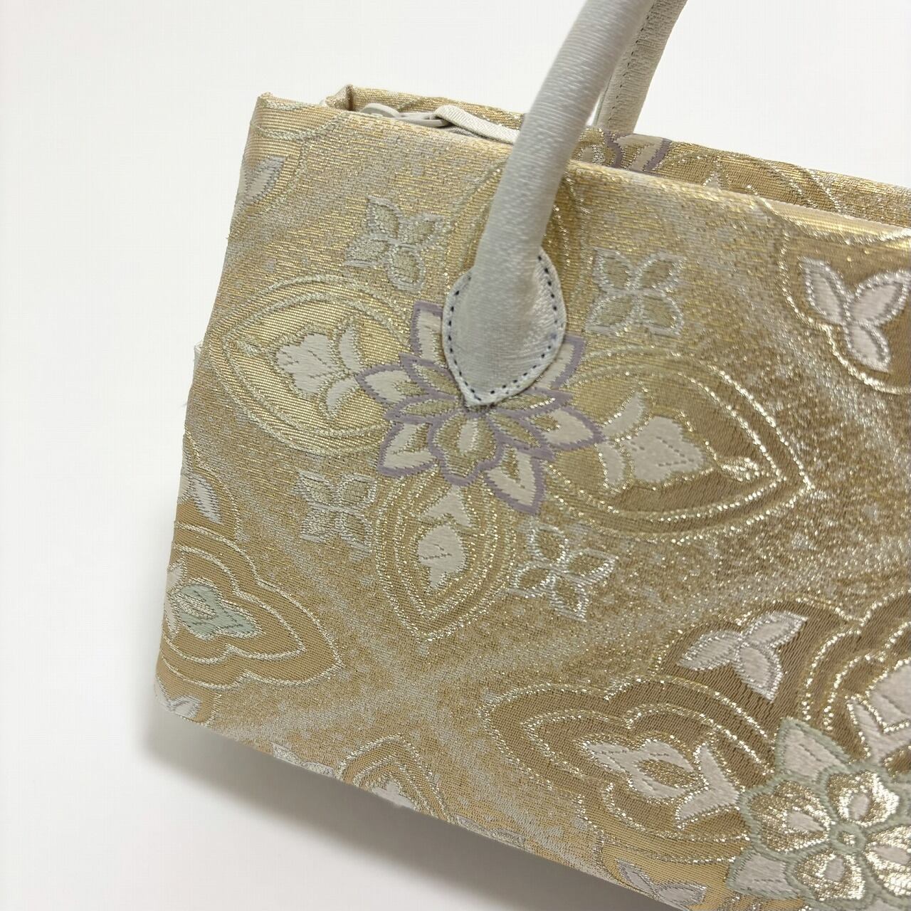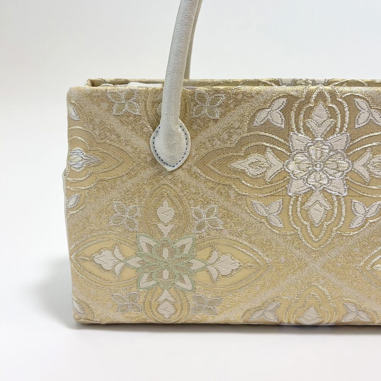 西陣の帯地を用いた和装バッグです。