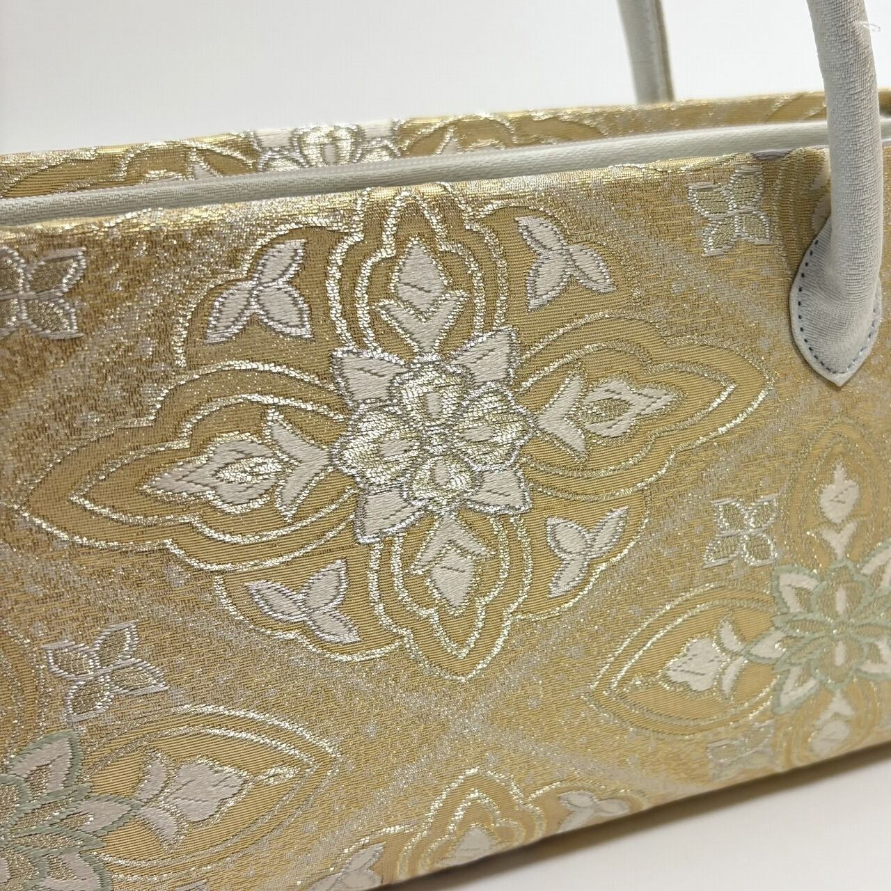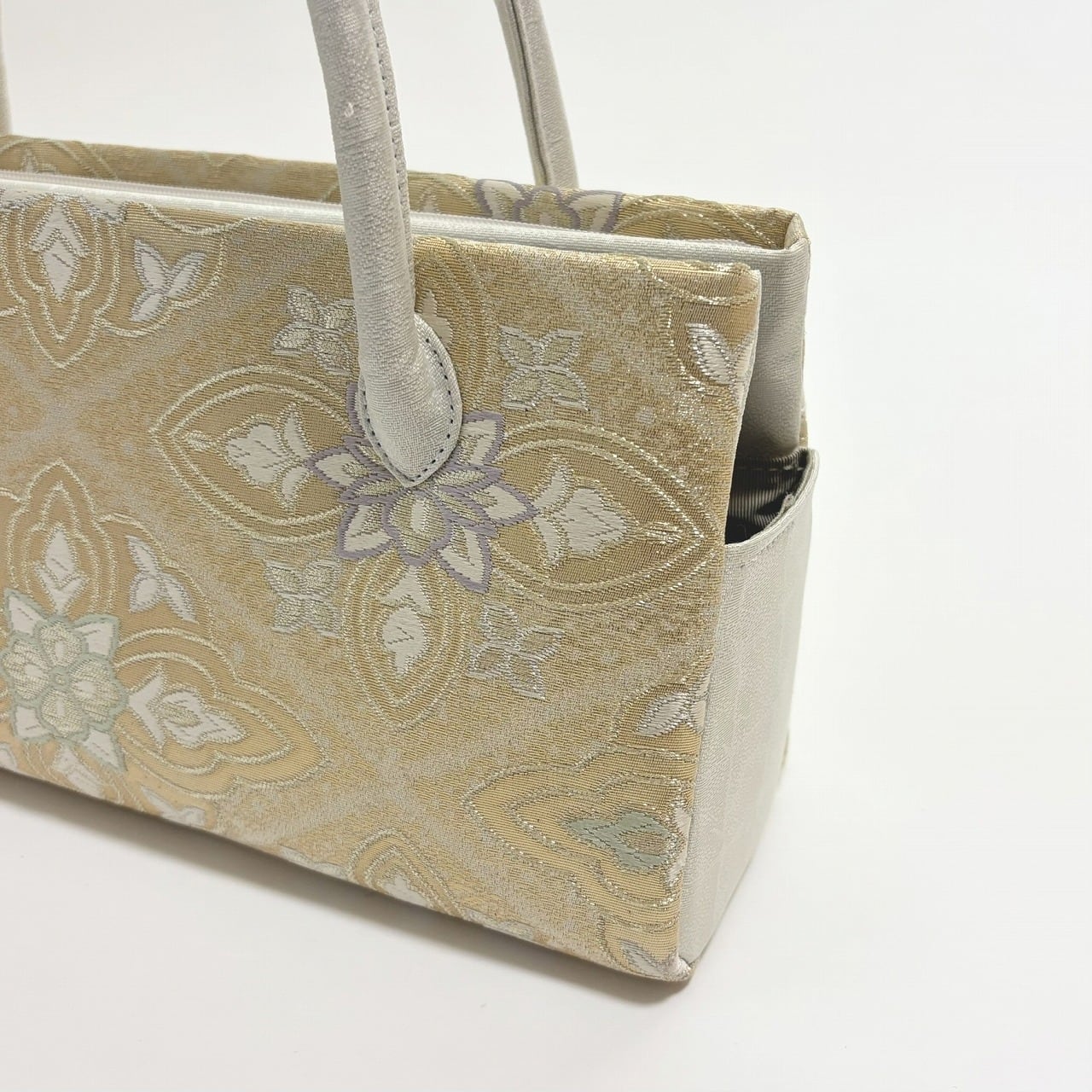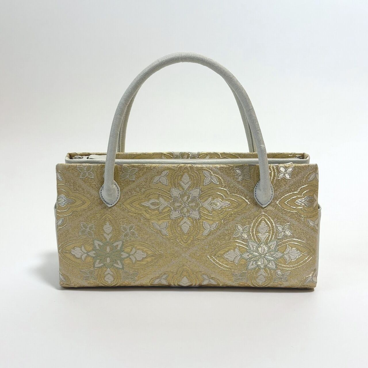 西陣の帯地を用いた和装バッグです。