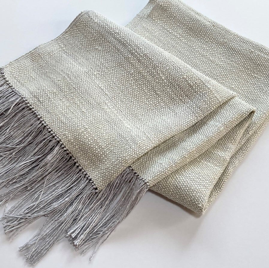 熟練の職人の手によって高機で丁寧に織られており、ざっくりとした見た目のボリュームとは裏腹に非常に軽くしなやかで使えば使うほどに肌に馴染みます。