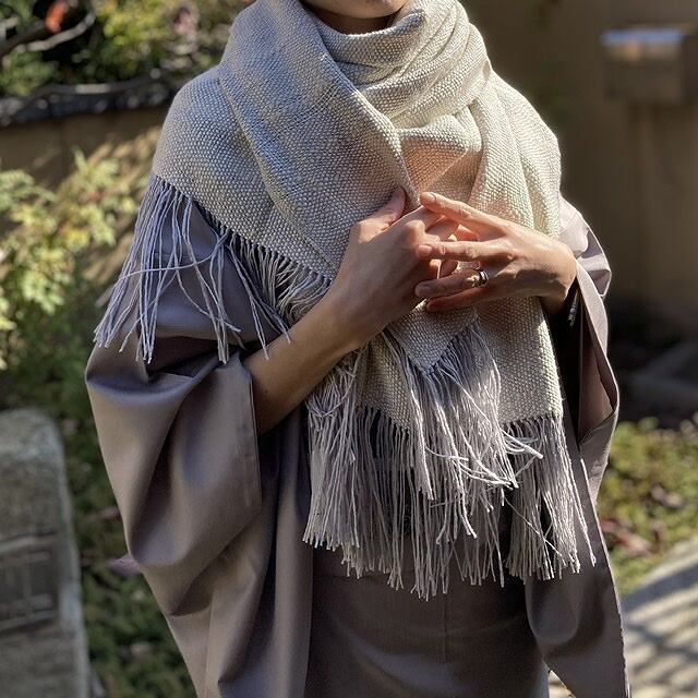 結城紬の、真綿糸の上質なショールです。