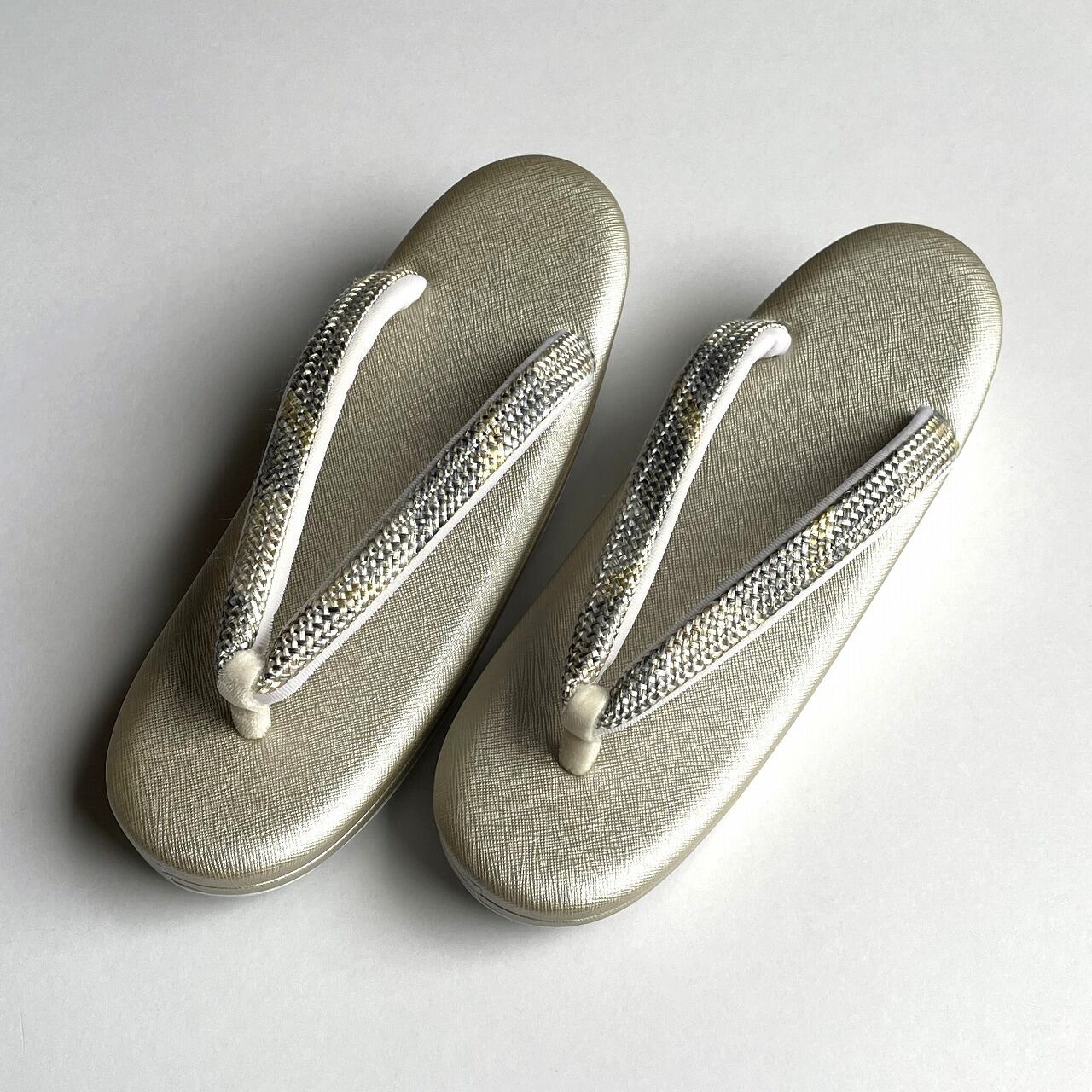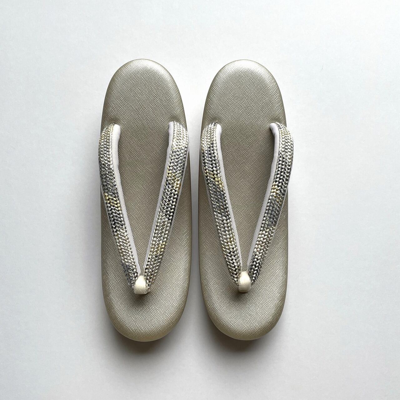 紺に金、ベージュなどが組み合わさったおしゃれな色目で、組紐ならではの艶やかさがあります。型押しの台はゴールドがかったグレージュの落ち着いたお色です。