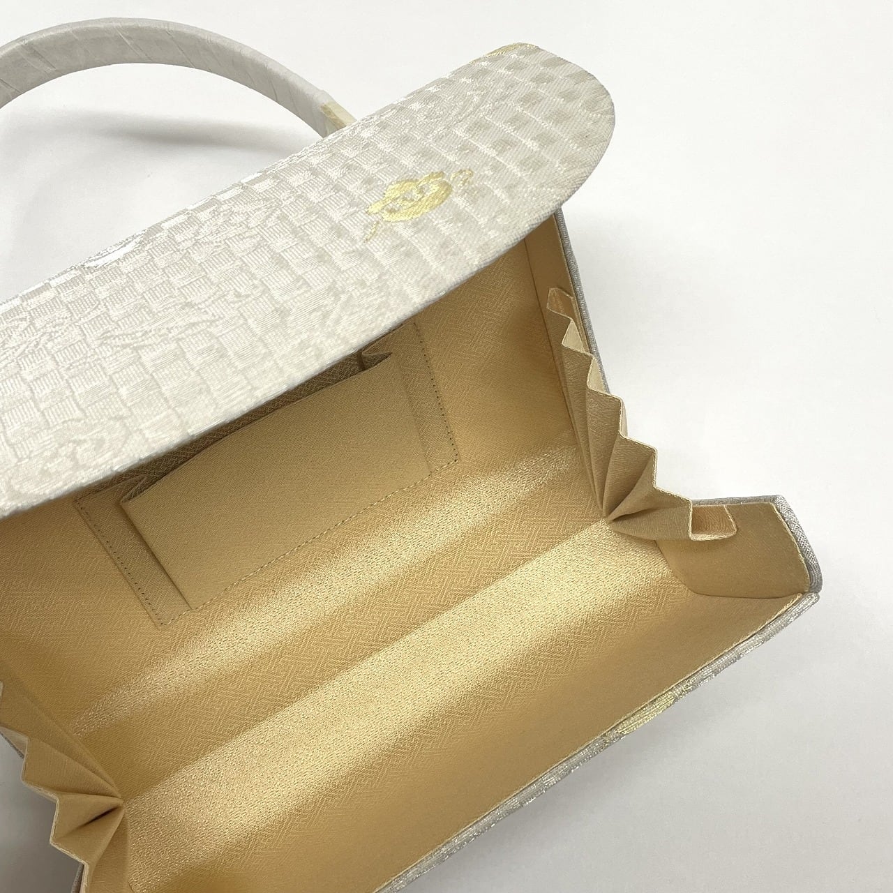 ワンハンドルで上品な佇まいは礼装の装いに相応しく、また、大きく開く開口部で非常に物の出し入れがしやすい作りとなっております。
