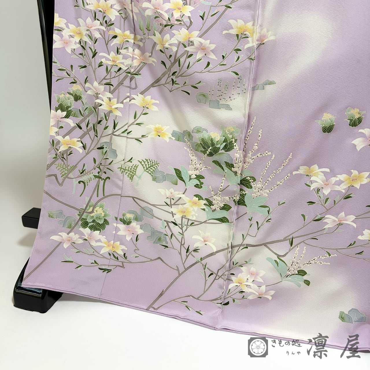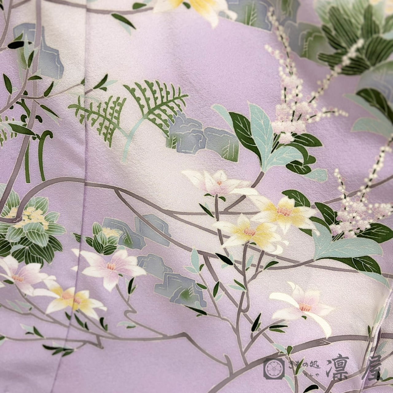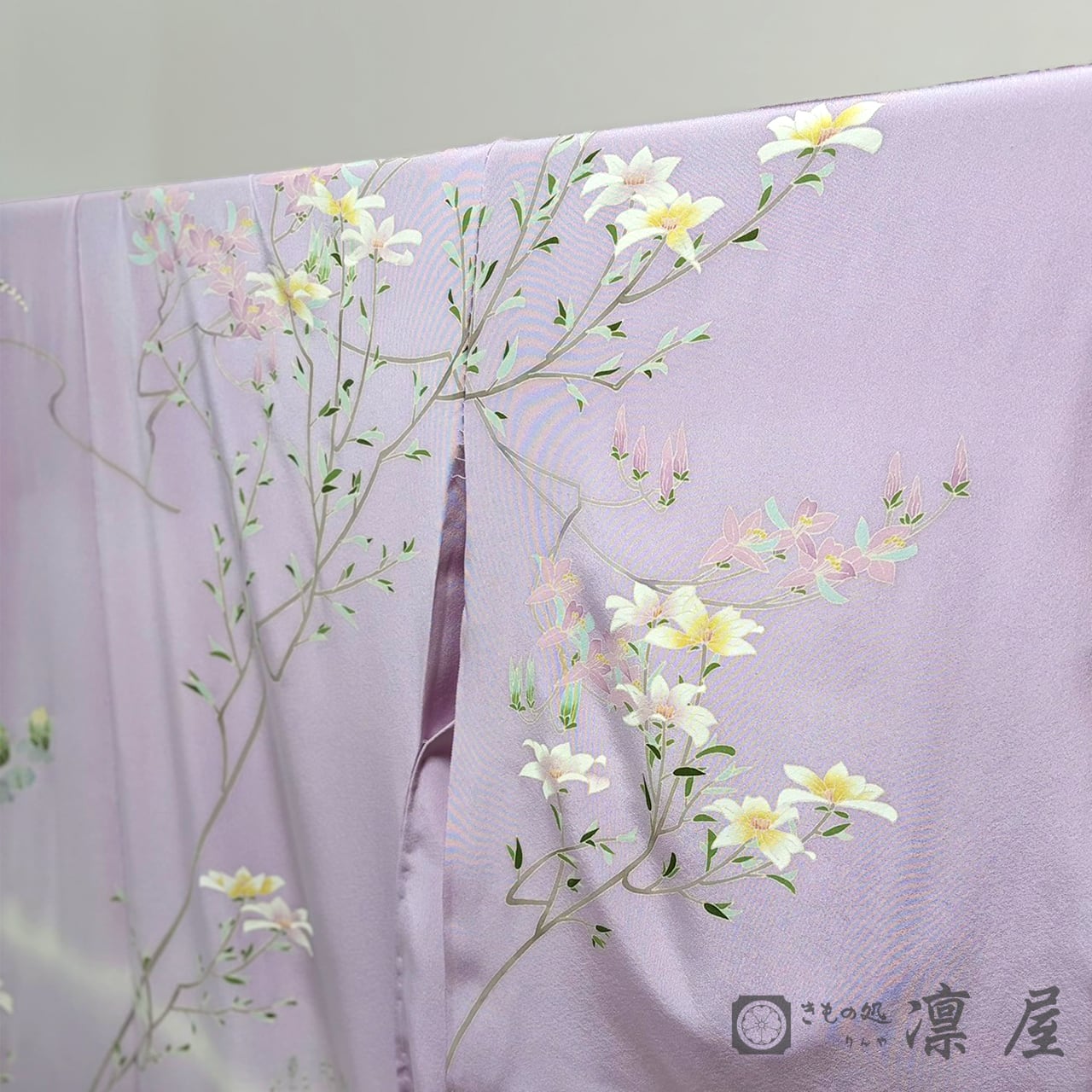 控えめな彩度で彩られた気品高い雰囲気は、華やかな場面でも目を惹き、「美を纏う」加賀友禅の世界観が広がります。
