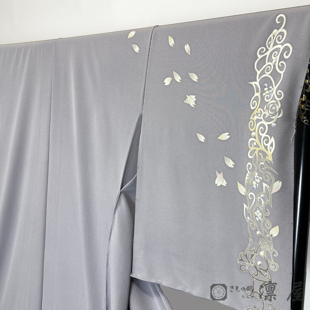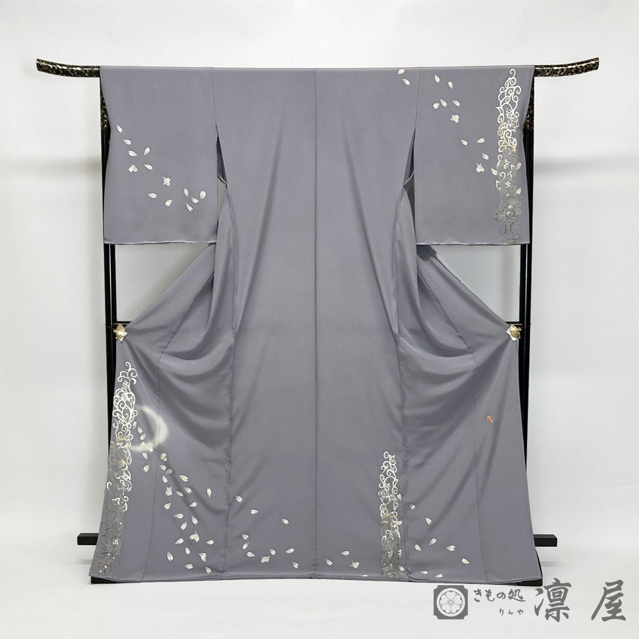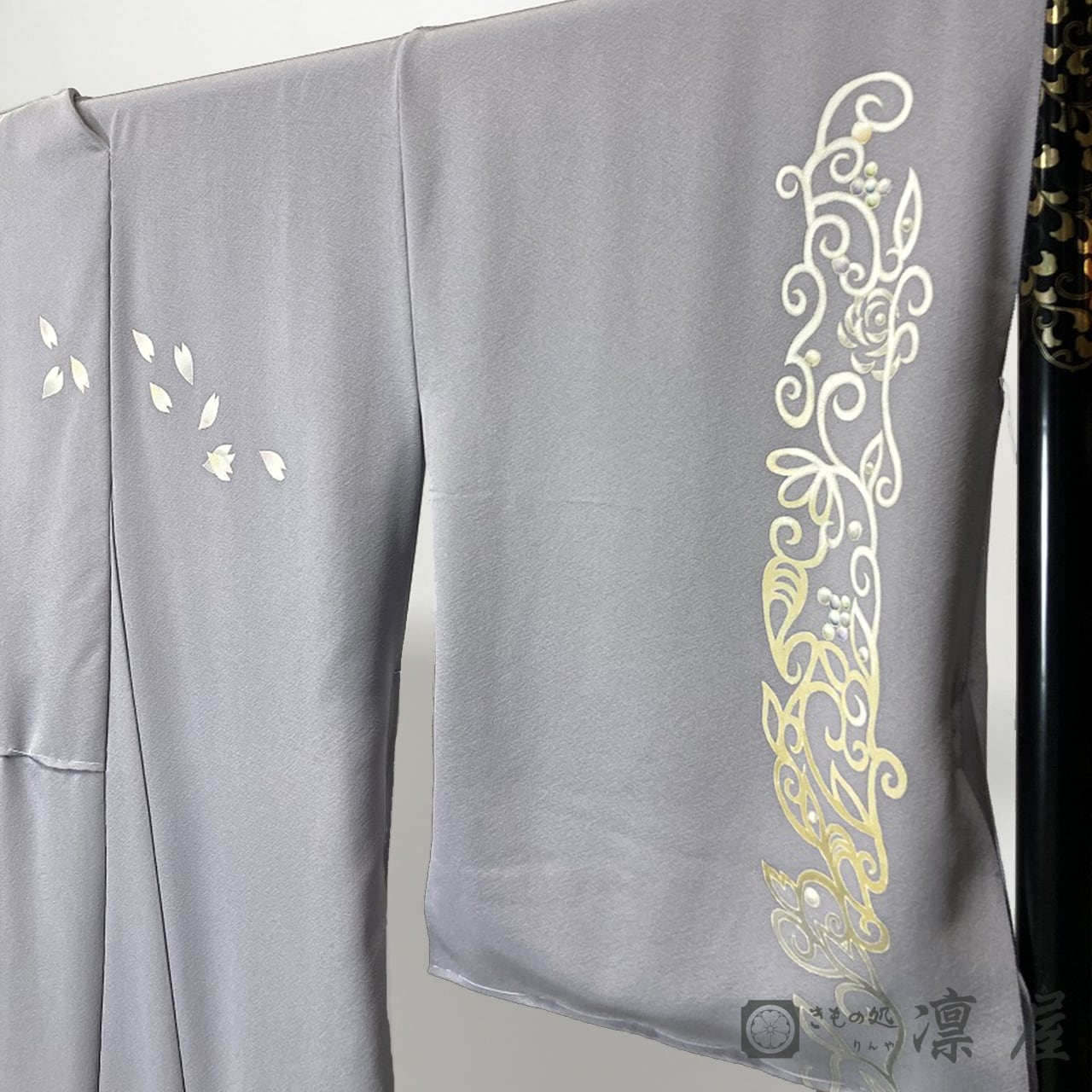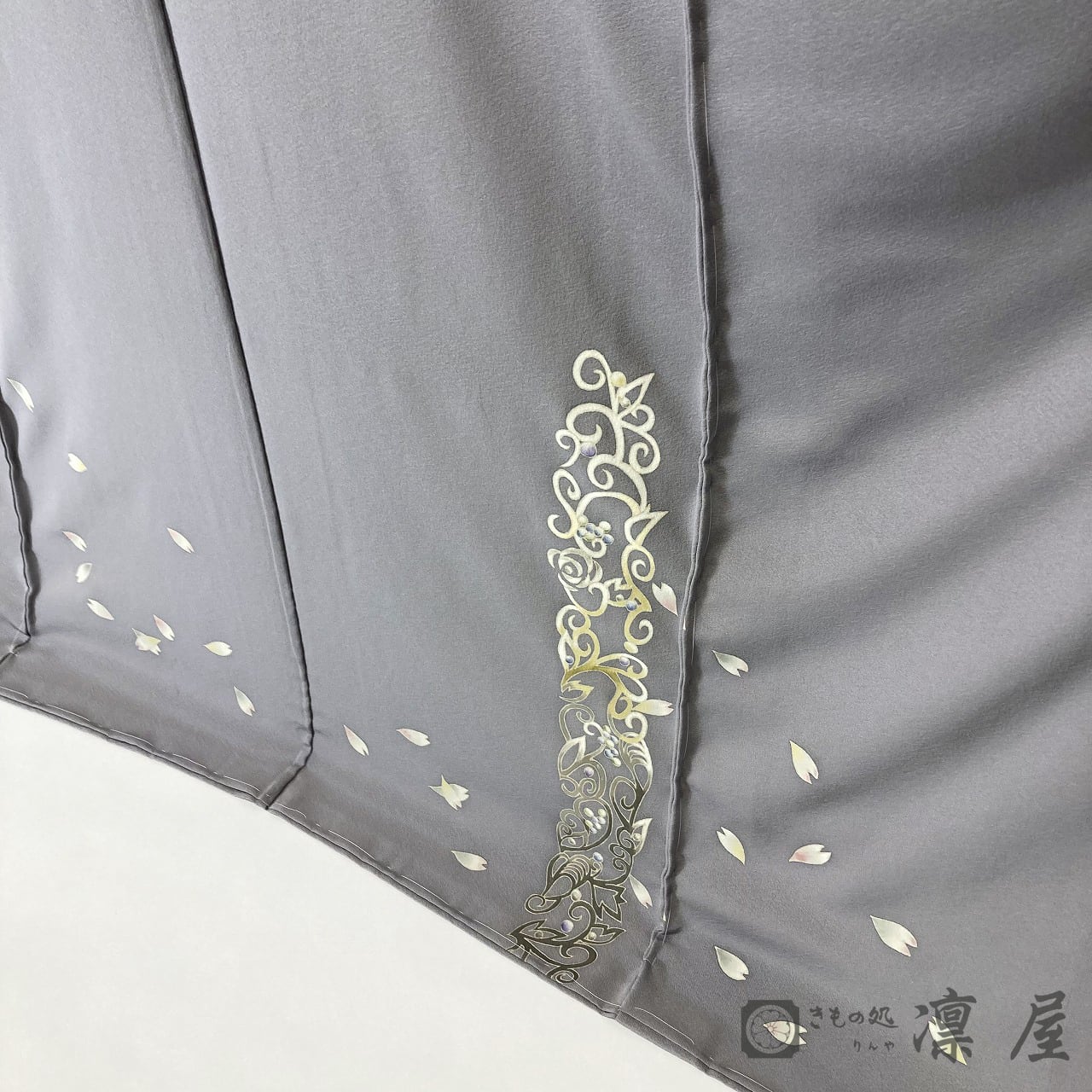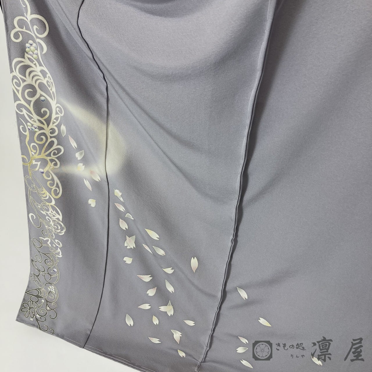 正倉院文様を主軸とした繊細な筆致が目を惹く加賀友禅作家・吉村伊佐子の作品を、りんや好みの地色に別注にて染めていただきました。